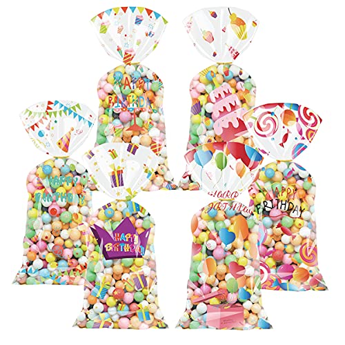 【Pacchetto】 - Sacchetti di caramelle in cellophane trasparente da 120 pezzi (20 pezzi per ogni stile), Legare da 120 pezzi. È conforme al tema delle feste di compleanno ed è sufficiente per soddisfare le tue esigenze di sacchetti regalo per feste.