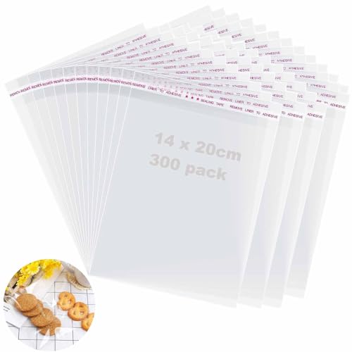 Sacchetti in Cellophane, 300 pezzi 14 x 20 cm OPP Sacchetti in Plastica Autoadesivi, Buste in Cellophane Trasparente con Chiusura Adesiva, per Caramelle Biscotti Lecca Lecca