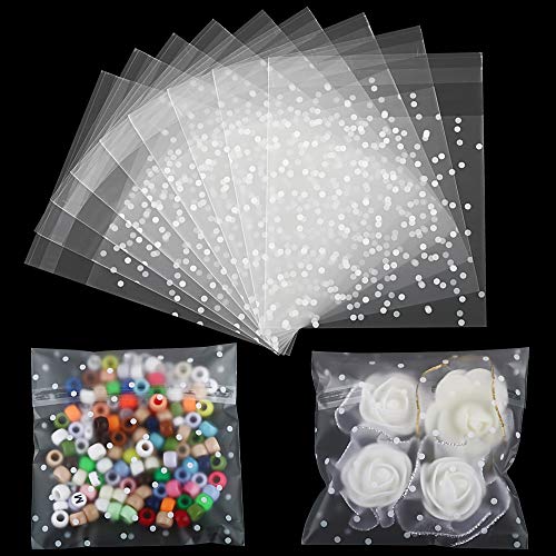 200 Pz Sacchetti Cellophane Trasparente Autoadesivi Plastica con Pois Pallini Bustine per Confetti Caramelle Biscotti Cioccolati Gioielli