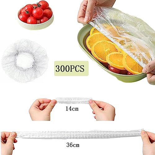 Sacchetti per Conservare Freschi, 300 Pezzi Sacchetto per la Conservazione del fresco dei Cibi, Pellicola con Elastico per Alimenti, Sacchetti Plastica Elastici, Cuffia da Doccia, Copriscarpe