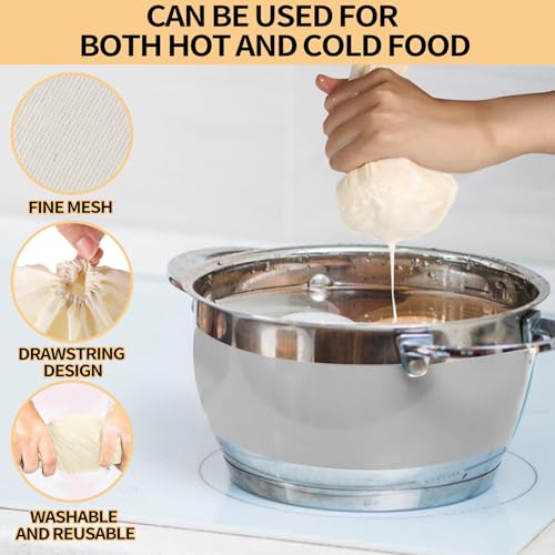 【Sacchetti cotone filtrante】Il nostro sacchettino cotone è realizzato in cotone naturale, morbido, ad alta tenacità, privo di lanugine, sicuro, resistente alle alte temperature, può essere a diretto contatto con il cibo, puoi usarlo con sicurezza.