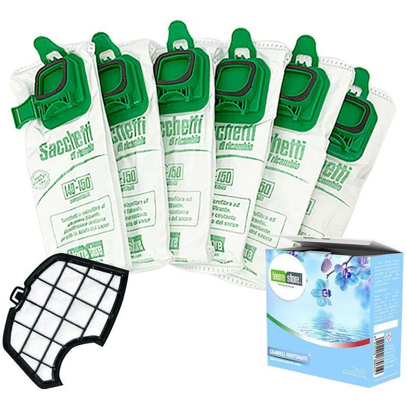 SACCHETTI FOLLETTO VK 140 VK 150 12PZ + GRANULI PROFUMATI TALCO+ FILTRI COMPATIBILI Sacchetti folletto vk 140 vk 150 6 pz + talco + filtri compatibili Esalta la pulizia della tua casa con il Kit Consumabili per il tuo FOLLETTO VK140 - VK150, un'offerta completa e di qualità superiore firmata BierreStore. Questo kit include 6 Sacchetti in microfibra, 3 bustine da 50 grdi granuli profumati TALCO e 2 filtri protezione motore, tutti compatibili e garantiti per un'efficienza senza compromessi. La freschezza incontra la pulizia mentre utilizzi il tuo Folletto VK150 - VK140 grazie ai granuli profumati TALCO, realizzati con argilla naturale ed essenze aromatiche di alta qualità, offrono fragranze persistenti nel tempo. Utilizzarli è molto semplici e richiede pochissimi passaggi: apri la bustina spargi i granuli sul pavimento aspirali con l'aspirapolvere In questo modo le tue stanze saranno sempre pulite e profumate. I Sacchetti VK140 - VK150 inclusi nel kit sono realizzati in microfibra a 5
