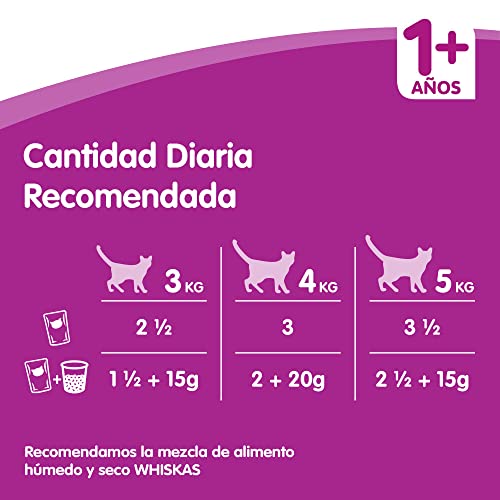 Bustine di cibo per gatto adulto contenenti zinco e olio di girasole: una fonte naturale di acidi grassi Omega 6 per far risaltare il tuo gatto da una pelle e un pelo sano, gli alimenti sani per gatti di Whiskas aiutano a rendere il tuo gatto sano e contento