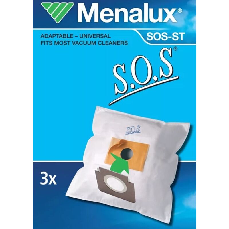 Conf. 3pz SACCHETTI IN MICROFIBRA UNIVERSALI - SOS-ST adattabili alla maggior parte di Aspirapolveri, si adatta utilizzando solo il cartoncino del vecchio sacchetto, e si incolla rimuevendo la pellicola adesiva. MENALUX Prima di buttare il vecchio sacchetto, rimuovere il cartoncino del vecchio, poi rimuovere la pellicola dall adesivo del nuovo e incollare il cartoncino.Il gioco e' fatto. Compatibile con il 90% degli aspirapolveri in commercio.