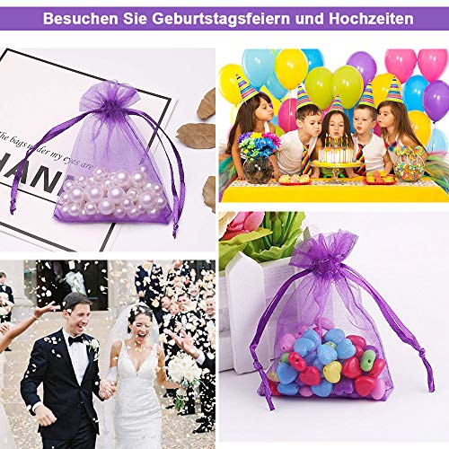 Sacchetti Organza, Sacchetto Regalo in Organza per Confezionare Caramelle, Regali, Viola, Piccolo, 100 Pezzi