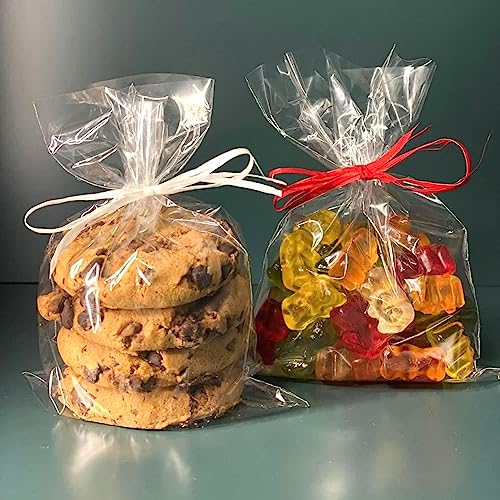DNT 200 Sacchetti di plastica Trasparente in cellophane 10 x 15 cm Sacchetti di plastica per Compleanno, Matrimonio, Comunione, Battesimo, Biscotti, Dolci, Caramelle, Cupcakes al Cioccolato