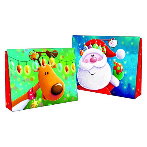 Set di 2 sacchetti per regali natalizi super jumbo da 45,7 x 68,6 cm, motivo: paesaggio con Babbo Natale e Rudolph