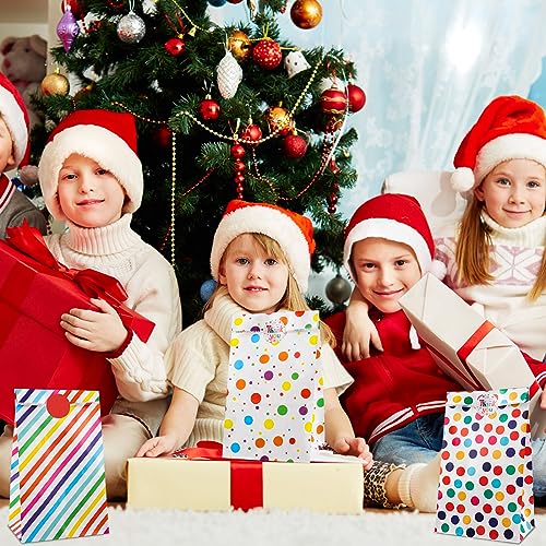 Sacchetti per Regalini Fine Festa, Mezzar 50Pcs Colorato Sacchetto Regalo di Carta a Pois, con 6 Adesivi Sacchetti Carta Piccoli, Sacchetto Regalo dei Bambini per Compleanni Feste Natale