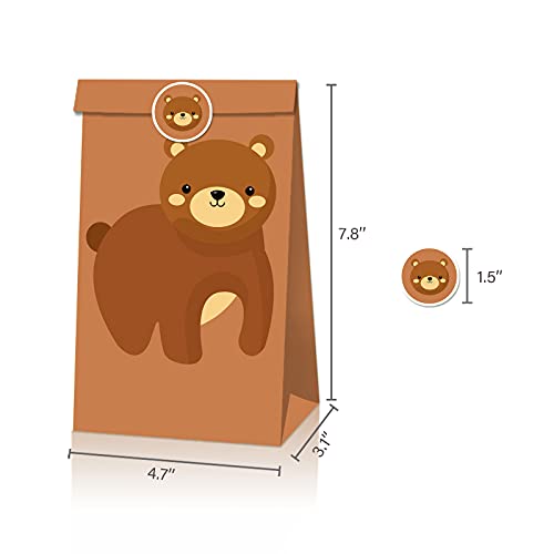 Sacchetti regalo per bambini Baby Shower Decorazioni per bomboniere per feste di compleanno Forniture Set di 24, Sacchetti di carta kraft per feste di compleanno a tema animali della foresta