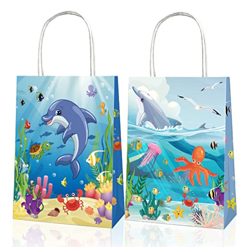 Sacchetti regalo per feste a tema oceano da 12 pezzi, Sacchetti regalo per feste di delfini, Sacchetti regalo per feste con stampa creature del mondo sottomarino, Sacchetti di carta modello polpo