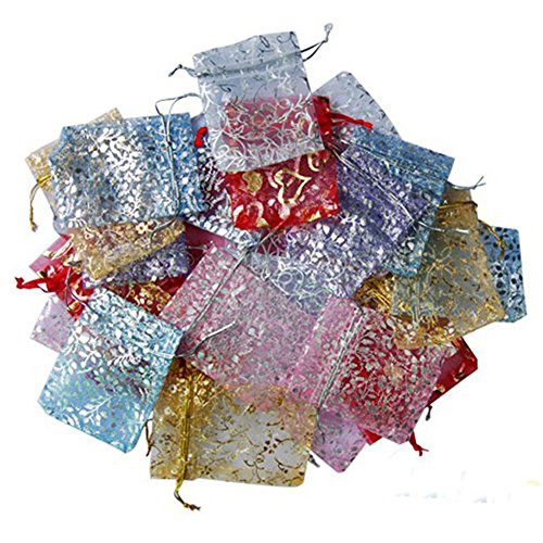 25 sacchetti regalo in organza, con coulisse, per matrimoni, feste, compleanni, Natale, gioielli fai da te (colore casuale)