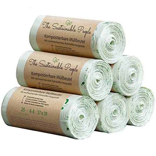 TSP, sacchetti per rifiuti organici da 6-8 litri, con certificato "OK compost HOME", 100% compostabili e biodegradabili per il tuo compost e il bio contenitore
