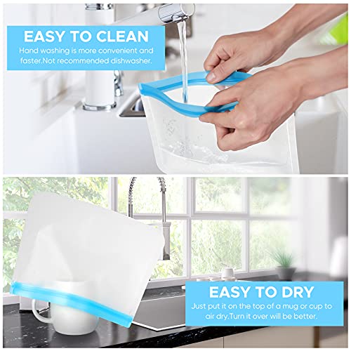 Facile da pulire: puoi semplicemente riempire i sacchetti del congelatore in silicone con acqua e immergerli, quindi agitare e risciacquare o utilizzare una semplice spazzola per piatti per lavare e allungare il sacchetto sul vetro per asciugarlo.