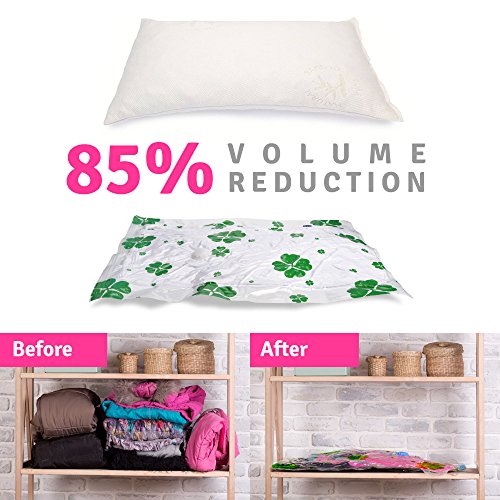 Sacchetti Sottovuoto Con Trifoglio Design - Buste Salvaspazio (confezione da 5) - Sacchi Per Vestiti, Copripiumino, Coperta, Telo Storage - Ideale per Viaggiare per Bagaglio