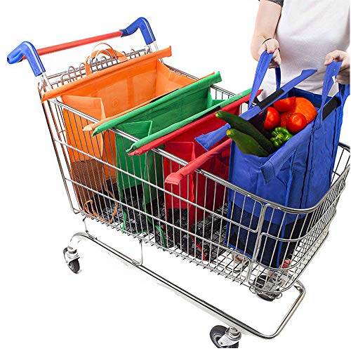 Sacchetti per la spesa, 4 pezzi, riutilizzabili e pieghevoli, ecologici, per appendere il carrello non tessuto per i normali carrelli del supermercato