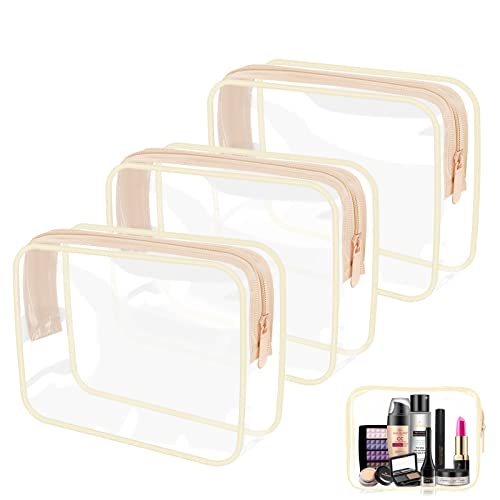 Set di 3 sacchetti da toilette trasparenti per aeroplano, impermeabili, da viaggio, per trucchi, liquidi nel bagaglio a mano, borsa da viaggio, Rosa carne., Semplice