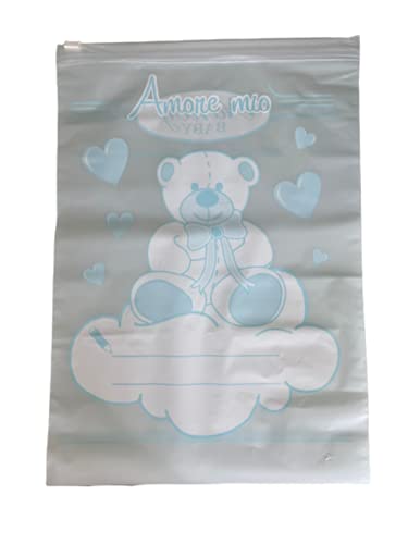 5 Sacchetti trasparenti per corredino 25x32cm con chiusura ermetica noenato e neonata Art. 555 (Celeste)