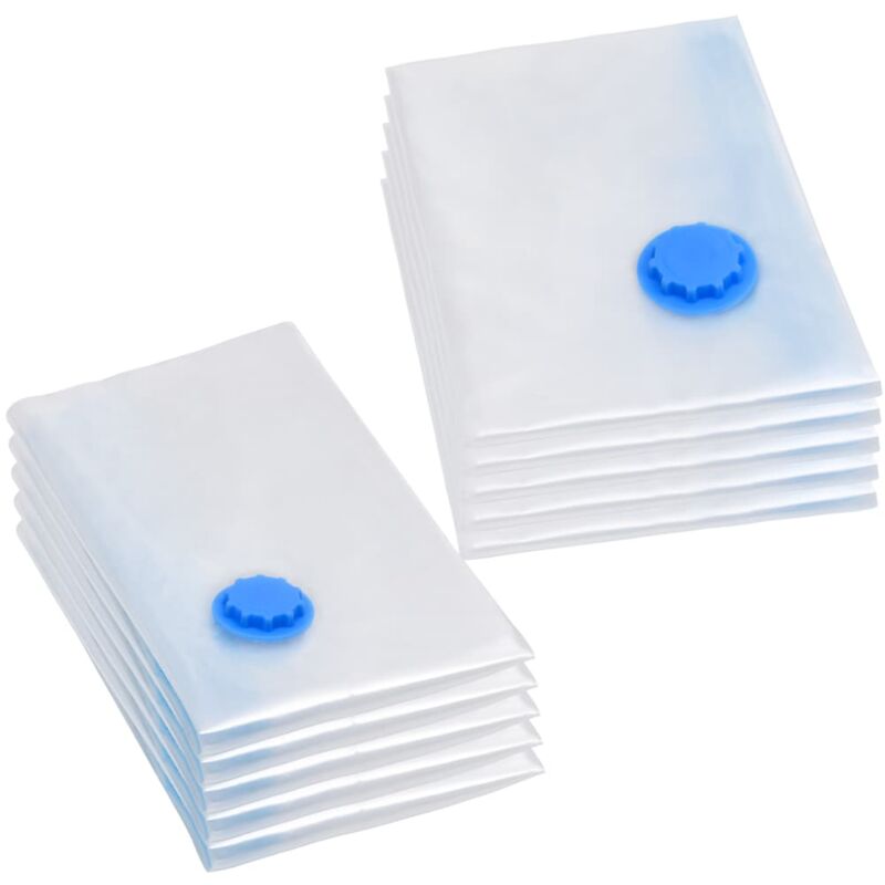 La nostra borsa sottovuoto pu riporre i vostri oggetti ingombranti o fuori stagione e massimizzare lo spazio in casa o in viaggio. Con queste borse, potete comprimere vestiti, cuscini, plaid, biancheria da letto stagionale e cos via. Sono perfette per l'uso a casa, in viaggio, per traslochi, ecc. La borsa, realizzata in plastica, antimuffa, anti umidit e impermeabile. _acile da usare, basta aprire la borsa, conservare gli oggetti, chiudere la borsa, aspirarla. Il cursore facile da sigillare consente di chiudere e aprire rapidamente la borsa. Questa borsa compressa anche facile da pulire ed riutilizzabile. La consegna include 2 misure diverse per soddisfare le vostre varie esigenze. Nota: La pompa non inclusa. Colore: Trasparente e blu Materiale: Plastica Dimensioni (L): 120 x 70 cm (L x P) Dimensioni (M): 80 x 60 cm (L x P) Tipo: Sacchetto di conservazione sottovuoto piatto Resistente a muffe, funghi e batteri Cursore facile da sigillare Con valvole di ingresso e uscita La consegna