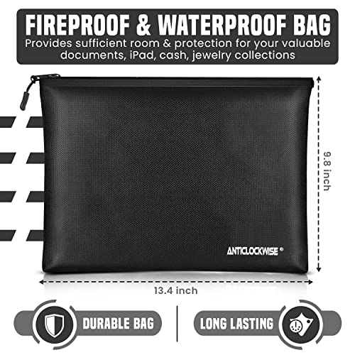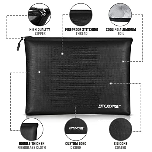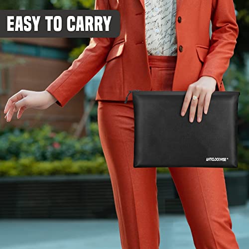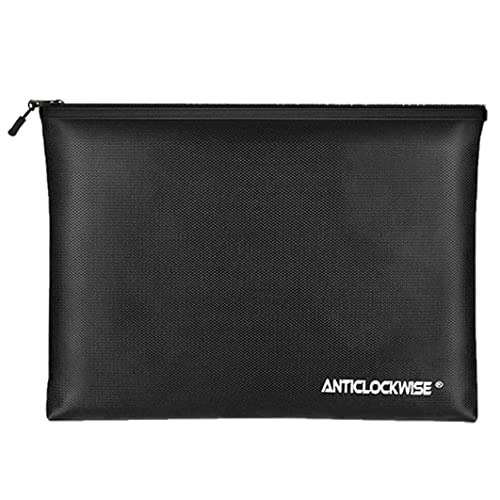 Sacchetto Antincendio Impermeabile, Anticlockwise Borsa per Documenti Ignifuga, Pochette Elegante in Pelle Uomo Nero, Borsa da Viaggio Uomo per Documenti, Contanti, Passaporto