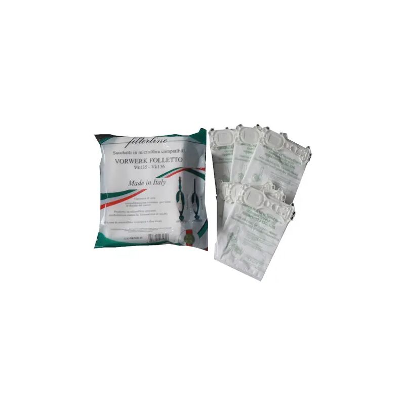 Sacchetto in microfibra adattabili, antibatterico contro la formazione di muffe, microfiltrazione costante per tutta la durata del sacco Realizzato in microfibra ecologica a due strato caratteristiche: compatibile con modello vk 135 e vk 136