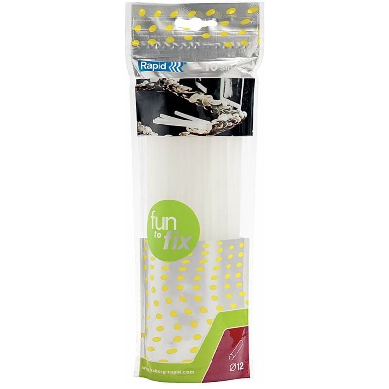 Sacchetto di 10 barre di colla divertenti da fissare trasp. ø12x190mm 23499500 rapido. Il sacchetto di colla Fun To Fix contiene 10 stick di colla trasparente. Si tratta di una nuova versione del contenitore con posizione verticale e sistema di apertura e chiusura. Marca: Rapid Colore: Traslucido Tipo: barre di colla ø 12mm Misura: Ø12x190mm Riferimento: 23499500 Contenuto: 10 barre Caratteristiche: Borsa con sistema di apertura e chiusura