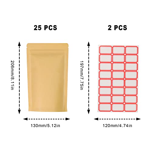 Sacchetto di Carta Kraft Zip, CHSEROK Sacchetto di Carta Kraft, Sacchetto Autosigillante, con Due Etichette Adesive per Conservare Tè, Frutta Secca, Biscotti