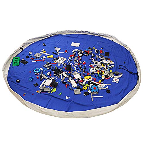 Sacchetto di immagazzinaggio grande giocattolo da 60 pollici LEADSTAR 150CM, organizer per giocattoli portatile in tela di cotone, giocattoli per bambini Tappetino da gioco per Lego (Blu)