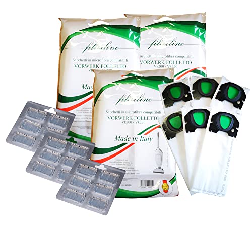 Sacchetto Microfibra Made in Italy + Profumini per Aspirapolvere Folletto Vorwerk vk200-vk201 (18 Sacchetti + 18 Profumini)