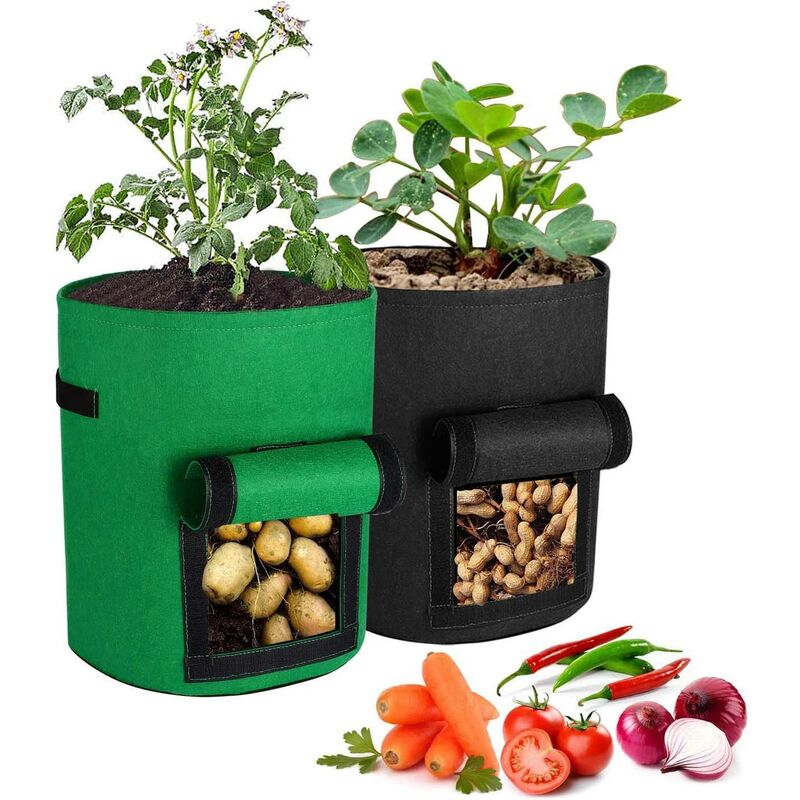 Bottiglia: La borsa per la coltivazione delle patate è realizzata in tessuto non tessuto di alta qualità, che può fornire un ambiente di crescita traspirante per lasilo e i semi. La lana ha una buona funzione di drenaggio che può evitare problemi di screpolature eccessive. Previene la decomposizione delle radici aiutando la malattia e la violazione della diffusione del suolo. Design flessibile: Borsa per fioriera con finestra a vista e due robusti manici per garantire il riutilizzo della borsa per fioriera. Puoi determinare rapidamente se la patata sta maturando e raccoglierla facilmente senza danneggiare le piante. Alta capacità: 2 confezioni di sacchi di patate da 7 galloni, 30 cm di diametro, 35 cm di altezza. I sacchetti per piante possono soddisfare la maggior parte delle tue esigenze di semina. Con la maniglia puoi spostarlo facilmente in giardino, balcone, patio, balcone o veranda. Ambiente e riutilizzabile: Il vaso è realizzato in tessuto non tessuto ecologico che non inquina