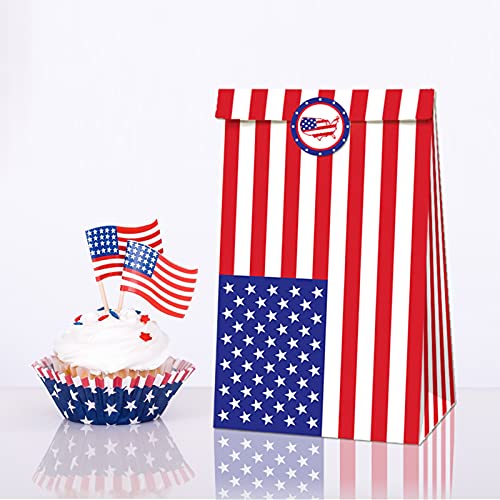 Sacchetto regalo modello bandiera americana con adesivi, sacchetti di carta americani per il 4 luglio, forniture per feste di compleanno a tema paese americano