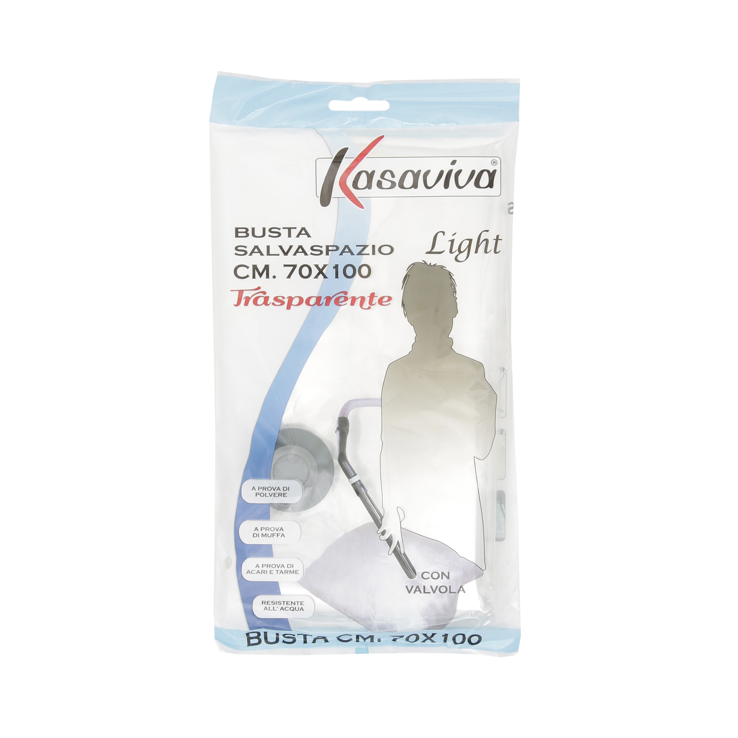 Le custodie sottovuoto offrono il metodo più comodo per riporre i vestiti nell'armadio senza occupare troppo spazio! Sarà sufficiente porre i capi all'interno della busta, con dimensione 70x100 cm, e rimuovere l'aria con l'ausilio di un aspiratore. In questo modo otterrai un risultato perfetto e pronto per essere riposto in cassetti e vani del guardaroba occupando il minimo ingombro. La busta sottovuoto preserva i capi a polvere, tarme e altri agenti esterni: perfetta per il cambio di stagione!