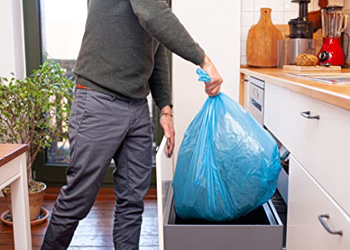 SOSTENIBILI PER L'AMBIENTE: questi sacchi per rifiuti sono realizzati con il 100 % di materiale riciclato (PE, almeno 90 % di materiale post consumo) nell'UE, la cui produzione genera una quantità di CO2 significativamente inferiore rispetto al PE fresco ottenuto da granulato vergine.