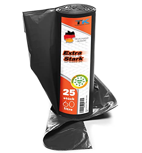 Sacchi spazzatura 60 litri - Sacchetti pattumiera con manici - Buste nere spazzatura indifferenziata (25 pezzi)