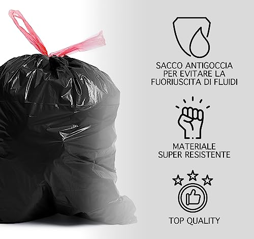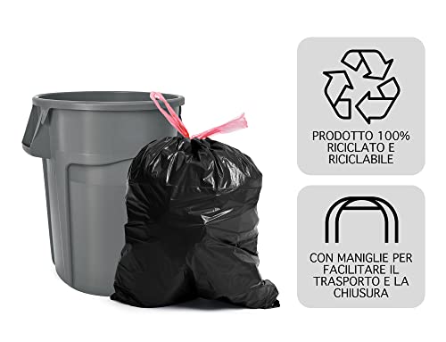 100 Sacchi Spazzatura SuperResistenti Con Maniglie Colore Nero Sacchetti Immondizia Condominiali Raccolta Differenziata Disponibili 30-60-110 Litri Antigoccia Antistrappo Impermeabili - Nero - 68x80