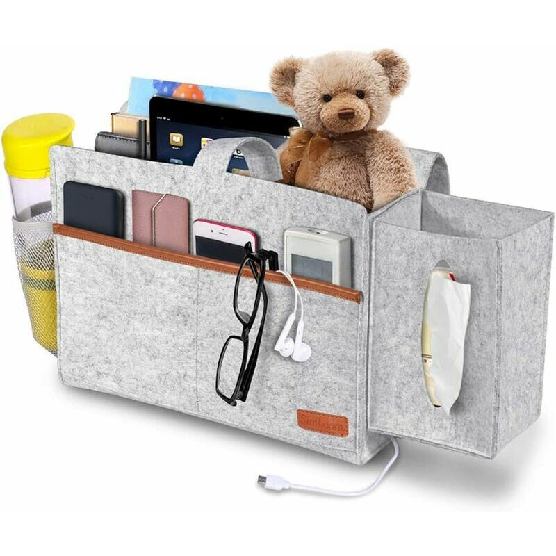 Sacco da letto aggiornato - Progettato con scatola di fazzoletti e portabottiglie e 2 fori laterali per cavi o cuffie, molto comodo da usare Il sacco da letto rimane stabile - Mettilo sotto il materasso, con la cinghia regolabile Appendi la sponda del letto o fissala alla scrivania con il velcro Design multitasche: presenta uno scomparto principale e 2 piccole tasche sul davanti. Offre spazio sufficiente per cellulare, occhiali, tablet, libri, riviste, telecomando, cavo di ricarica, ecc. Pratico organizer da letto: mantieni il tuo spazio in ordine e tieni le tue cose pronte. Ideale per casa, camera da letto, soggiorno e dormitorio Durevole e robusto - Realizzato in feltro spesso con pregevole fattura, morbido al tatto e molto resistente