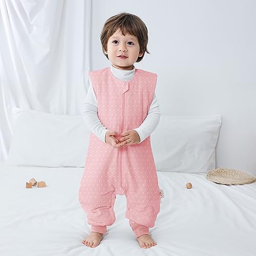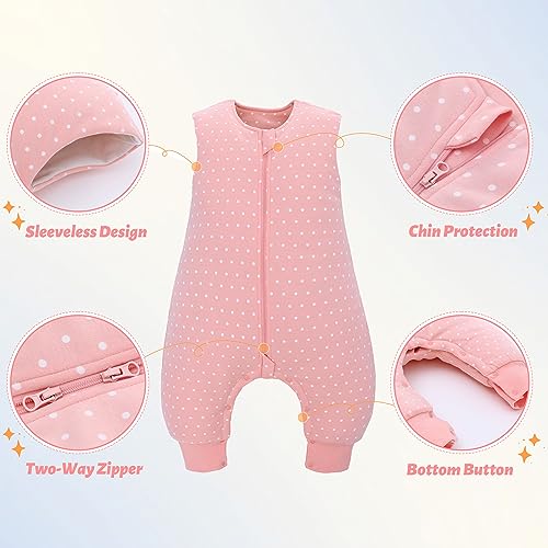 LAT Sacco Nanna per Bambini con Piedini, 2.5 TOG 100% Cotone Sacco Nanna Invernale, Senza Maniche Sacco a Pelo con Gambe per Bambini 3-36 Mesi (Medium, Puntini Bianchi)