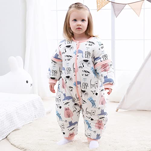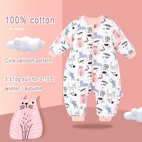 Sacco Nanna Neonato Invernale Caldo Sacco a Pelo con Piedini 3.5 tog Cotone Manica Staccabile Pagliaccetti Cartone Animato Pigiama 2-4 anni 3.5Tog Gatto rosa