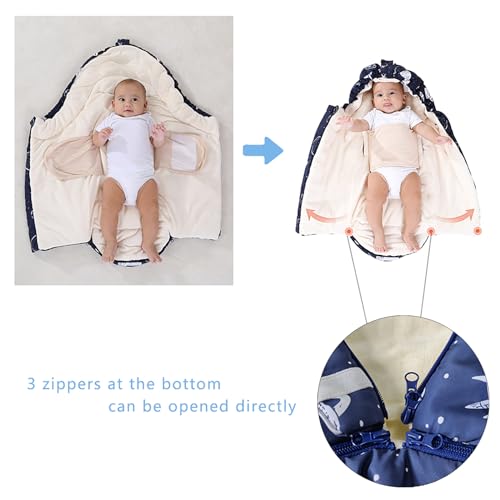 Luoghi applicabili: Apertura a 5 punti sul retro del prodotto, che può essere fissata su vari tipi di passeggini, può essere utilizzato come sacco a neonato per evitare che i bimbi calcino la trapunta e offre un buon ambiente per dormire.