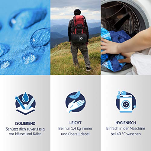 Caldo: comodo sacco a pelo da viaggio per 3 stagioni, anche quando fa freddo. In primavera, in estate come sacco a pelo estivo o in autunno comfort fino a 10 °C, estremamente fino a 5 gradi, ad esempio con inserto in pile. Aiuta a combattere i piedi freddi.