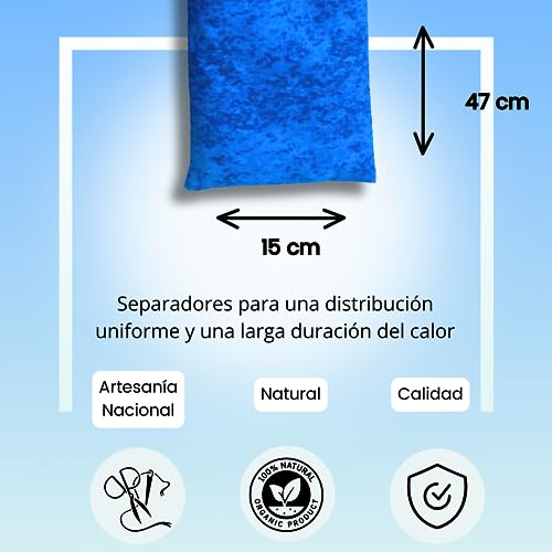 Sacco per semi a microonde Cervicale termico di grano e lavato - 100% cotone - 47 x 15 cm - Borsa cuscino con aroma caldo e freddo multiuso sacco piedi caldo letti e lombari - sacco termico semi