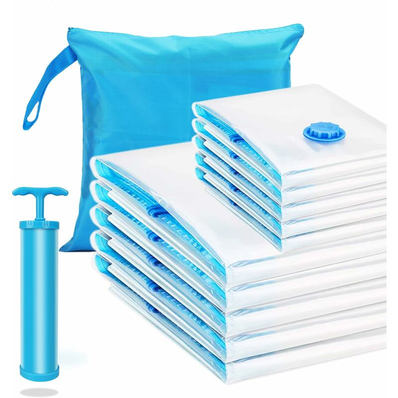 10 sacche di compressione FACILE À UTILIZZATORE Valve testée Assicurati che l'aria non entri nelle sacche di stoccaggio con la valvola turbo aperta. tripla tenuta ultra sicuro Doppia fermentazione éclair La doppia cerniera mantiene i tuoi vestiti ermetici e compatti. Triple étanchéité Con materiale PA e PE, questo sacchetto sottovuoto protegge gli effetti personali da acqua, danni, polvere Pompa dell'acqua mano fornita 78% RÉDUCTION DU VOLUME