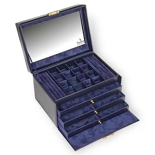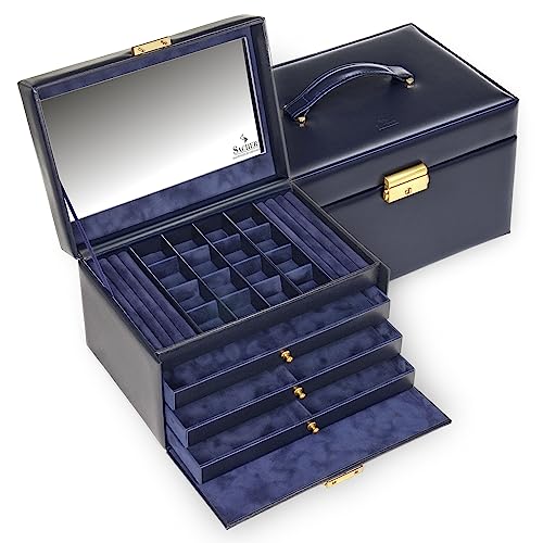SACHER Astuccio per Gioielli Lena/acuro/Blu/Cuoio/Handmade in Germany