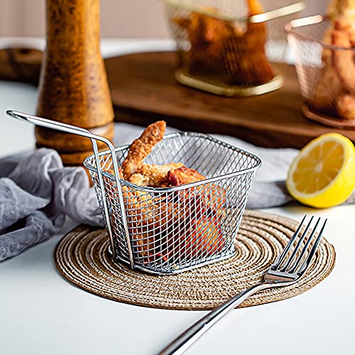 SacJkt Cestello per Mini Friggitrice, Cestello per Friggere, Cesto di Patatine Fritte in Acciaio Inossidabile 2 Pezzi con Manico per Friggere e Servire Cibo