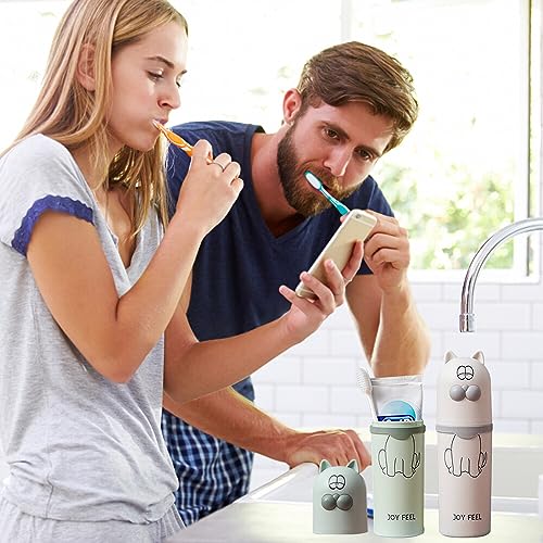 SacJkt Porta Spazzolino da Viaggio, 2 Pezzi Porta Spazzolini da Viaggio Bambino, Portatile Portaspazzolini Cartone Animato Gatto Animale Creativo per Viaggi Famiglia Campeggio Scuola (Bianco,Verde)
