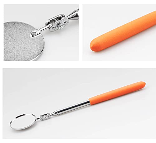 REGOLABILE - La gamma di contrazione della maniglia è 280-445 mm. Si estende facilmente in aree ristrette per cercare oggetti persi o lasciati cadere ed eseguire ispezioni e specchio in vetro trasparente per un riflesso perfetto