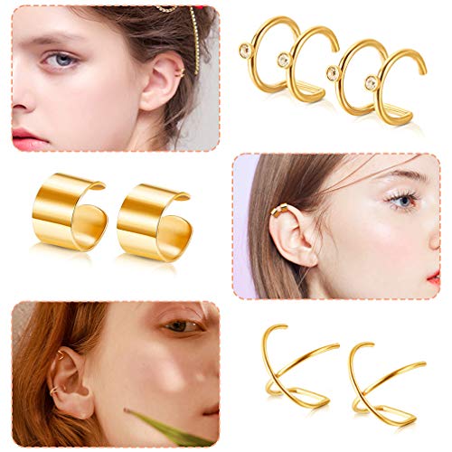 Saconell - Set di 18 paia di orecchini a clip per cartilagine, in acciaio inox, con 6 stili e clip per cartilagine, non piercing per elica, cartilagine (oro/argento/rosa)