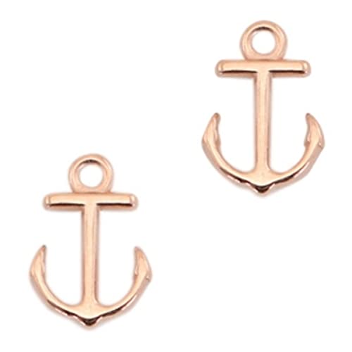 Sadingo - Ciondolo DQ (Designer Quality) in metallo a forma di 'Ancora' 2 pezzi 15 X 10 mm in zamak dorato o argentato colore a scelta oro rosa