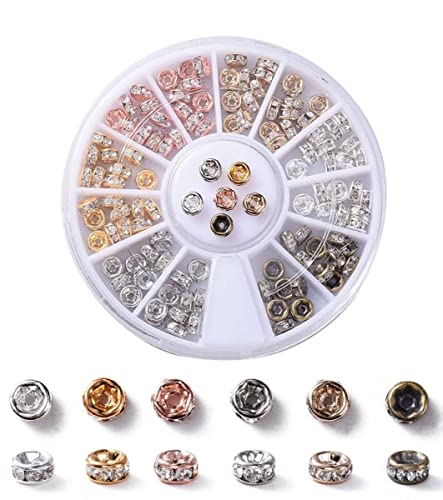 Sadingo Set di perline per gioielli, 120 pezzi, 4 mm, 6 colori, perline in metallo, perline di strass, gioielli fai da te