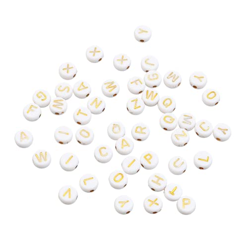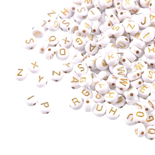 Sadingo Perline con lettere bianche e oro, 7 mm, 1820 pezzi, per fai da te, piccole lettere miste, per bracciali, collane