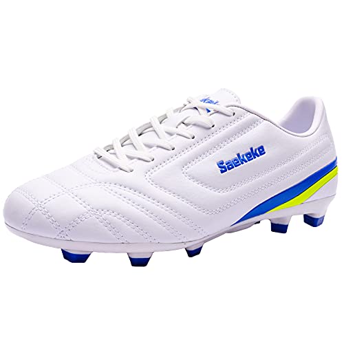 Saekeke Scarpa da Calcio FG Unisex-Bambini Ragazzi e Ragazze Scarpe da Football per Multiterreno S2116 Bianco EU39